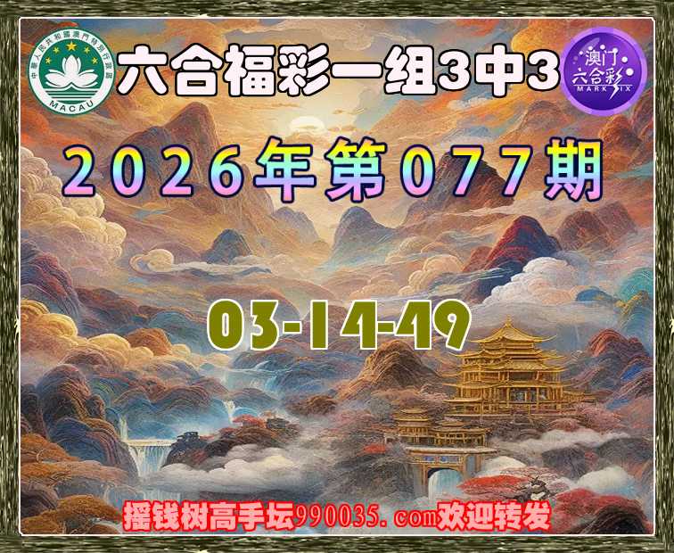 077期:【六合福彩】【一组3中3】 高手验证